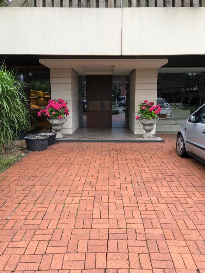 Hochwertiger Eingangsbereich mit Sandsteinverkleidung und eingelassenen Einbaustrahlern; Eingangstür in Nussbaum mit seitlichen Glaselementen Gaskamin und Raumhöhe 2,80 m ; Pendeltür als Trennelement zwischen den Räumen – von beiden Seiten einsehbar Separater Zeichenbereich Zurückgezogener Bürobereich und Verwaltungsplatz – Ideal für Ihre Akten und BackOffice.