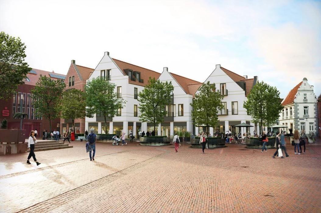 Die Immobilie Am Markt 4 in Lingen wurde größtenteils als Gewerbeimmobilie genutzt und ist prägender Teil des Lingener Stadtbildes. Die Außenfassade bleibt überwiegend in der bisherigen Optik bestehen und wird durch kleinere Akzente und größere Fensteröffnungen modernisiert. Im Innenbereich wird das Gebäude auf den Rohbauzustand zurückgesetzt und vollständig saniert. Unser besonderes Interesse gilt dabei der Verbesserung der Dämmung von Dach und Mauerwerk sowie die Verbesserung von Türen und Fenstern. Im Rahmen dieser umfangreichen Sanierungen entstehen insgesamt 30 neue Eigentumswohnungen, drei Gewerbeeinheiten im 1. Obergeschoss und neue Gewerbeeinheiten im Erdgeschoss, die z. B. als Einzelhandelsflächen genutzt werden können.