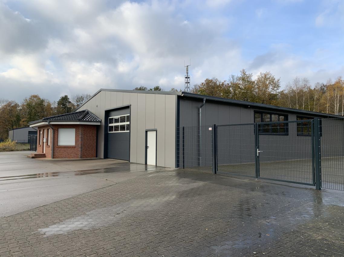 Ausstattung Bürofläche: 70 m² - drei Büros - moderner Glasfaseranschluss FTTH - moderne Netzwerkstruktur in allen Räumen - WC für Damen und Herren mit Duschen - Aufenthaltsraum mit Küchenanschluss - Anlieferung möglich - Belastbarer Betonboden - ein großes Sektionaltor - Starkstromanschlüsse - Überwachungskameras - Gelände komplett Umzäunt mit Doppelstabmattenzaun