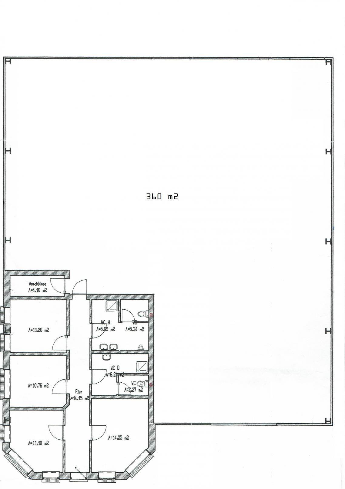 Die Gewerbehalle erstreckt sich über eine Gesamthallenfläche von 360 m². Während weitere 70 Quadratmeter als Büroflächen genutzt werden können.