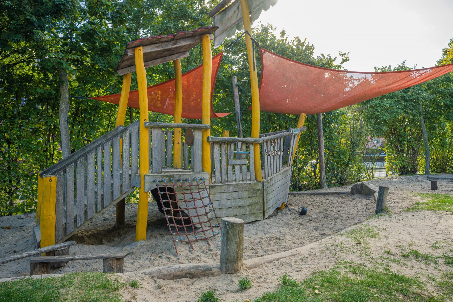 Die Kita „St. Ansgar“ verfügt über ein geräumiges, naturbelassenes Außengelände. Die Kinder haben beispielsweise die Möglichkeit im Wäldchen, an der Wasserbahn, im Sandkasten, auf der Wiese, beim Schiff oder auch auf der Rennbahn ganzheitlich ihre dingliche sowie soziale Umwelt zu erforschen und zu entdecken.