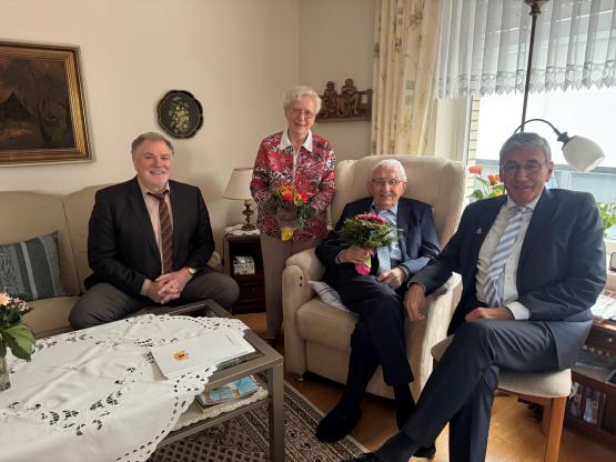 Ein besonderer Geburtstag in Lingen: Am vergangenen Samstag gratulierten der Zweite Bürgermeister Werner Hartke und der Ortsbürgermeister von Laxten, Manfred Schonhoff, dem Lingener Bernhard Kleene zu seinem 103. Geburtstag. Dabei überbrachten sie ihm die herzlichsten Glückwünsche des Landes Niedersachsen, des Landkreises Emsland sowie der Stadt Lingen (Ems). Bernhard Kleene ist damit aktuell der älteste Mann in Lingen. Und die Gratulationen konnten die beiden gleich doppelt aussprechen: Nur wenige Tage zuvor hatte auch Kleenes Lebensgefährtin Almuth Janssen ihren 80. Geburtstag gefeiert.