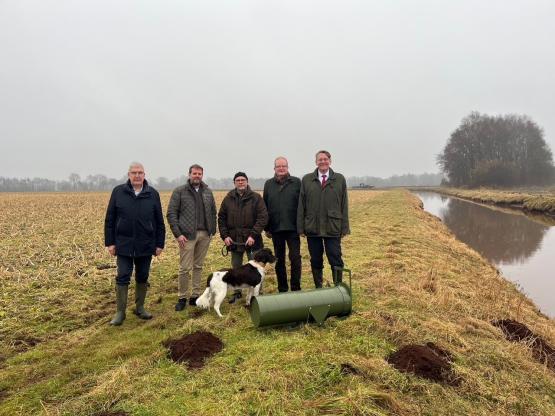 50.000 Euro je Jägerschaft, somit zusammen 150.000 Euro, stellt der Landkreis Emsland dafür zur Verfügung. „Durch ihre Grabetätigkeit stellen die Nutria eine große Gefahr für den Hochwasserschutz dar. Die Nutria sind im Bereich von Brücken, Wehren, Sielen, Schleusen und Einrichtungen des Hochwasserschutzes, insbesondere Deichen, nicht zu tolerieren. Auf eine Intensivierung der gezielten Bekämpfung von Nutria kann daher nicht verzichtet werden“, nennt Landrat Marc-André Burgdorf bei einem gemeinsamen Pressetermin mit den Jägerschaften am Landegger Schloot in Haren (Ems) den Grund für die Förderung.