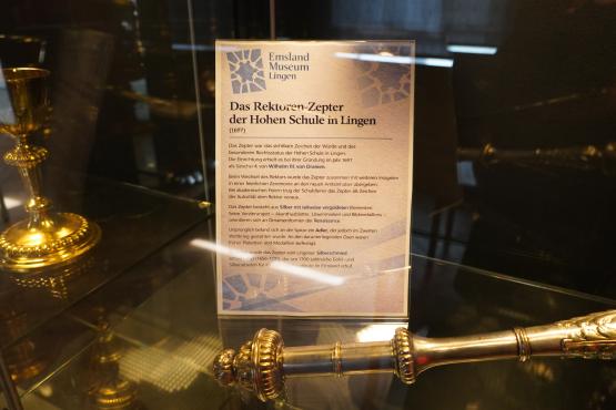 „Wir freuen uns sehr, das Zepter in unserer Schatzkammer ausstellen zu können“ erklärt Museumsleiter Dr. Christof Spannhoff. Er datiert die Entstehung des Zepters auf etwa das Jahr 1697. In dieser Zeit wurde in Lingen die sogenannte Hohe Schule, das Gymnasium Academicum, gegründet, aus dem 1819 das heutige Gymnasium Georgianum hervorging. Das Zepter selbst war ein Geschenk von Wilhelm III. von Oranien, dem damaligen Statthalter der Niederlande, zu denen Lingen damals gehörte. Er war zudem König von England.