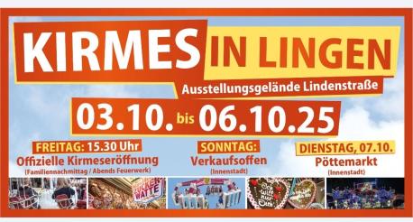 Offiziell eröffnet wird die Kirmes am Freitag, den 03.10.2025 um 15:30 Uhr mit einer kurzen Ansprache von Vertretern des Schaustellerverbandes und der Stadt Lingen (Ems). Der Freitagnachmittag lockt als Familientag mit ermäßigten Preisen.