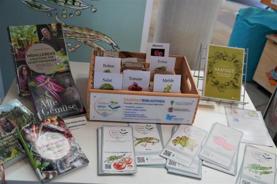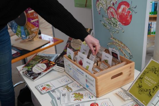 Das Prinzip ist einfach: Im Eingangsbereich der Stadtbibliothek steht eine Kiste mit verschiedenen Samentütchen. Von Erbsen über Tomaten bis hin zu Salat ist für jeden etwas dabei. Hobbygärtnerinnen und Hobbygärtner können sich bis zu drei Tütchen auswählen und diese „ausleihen“.