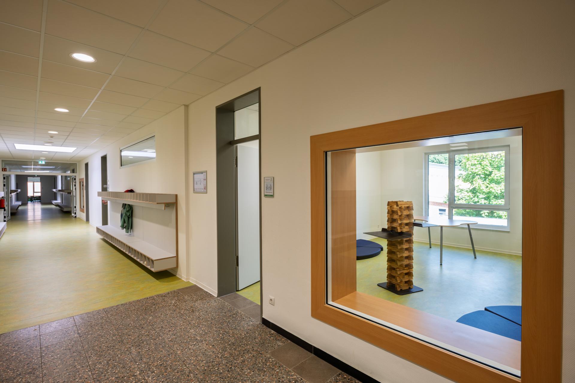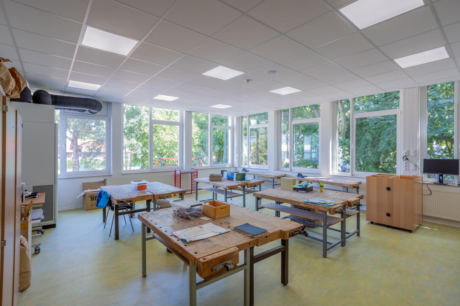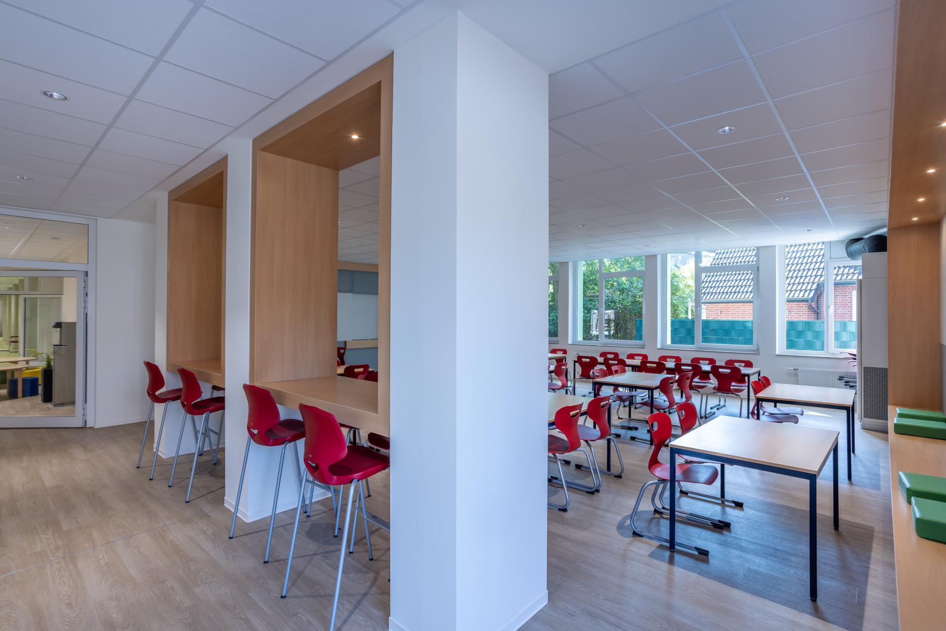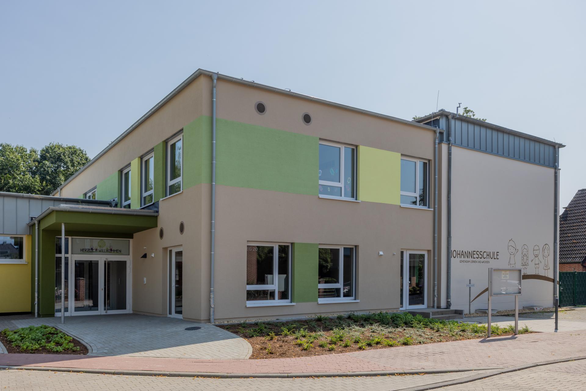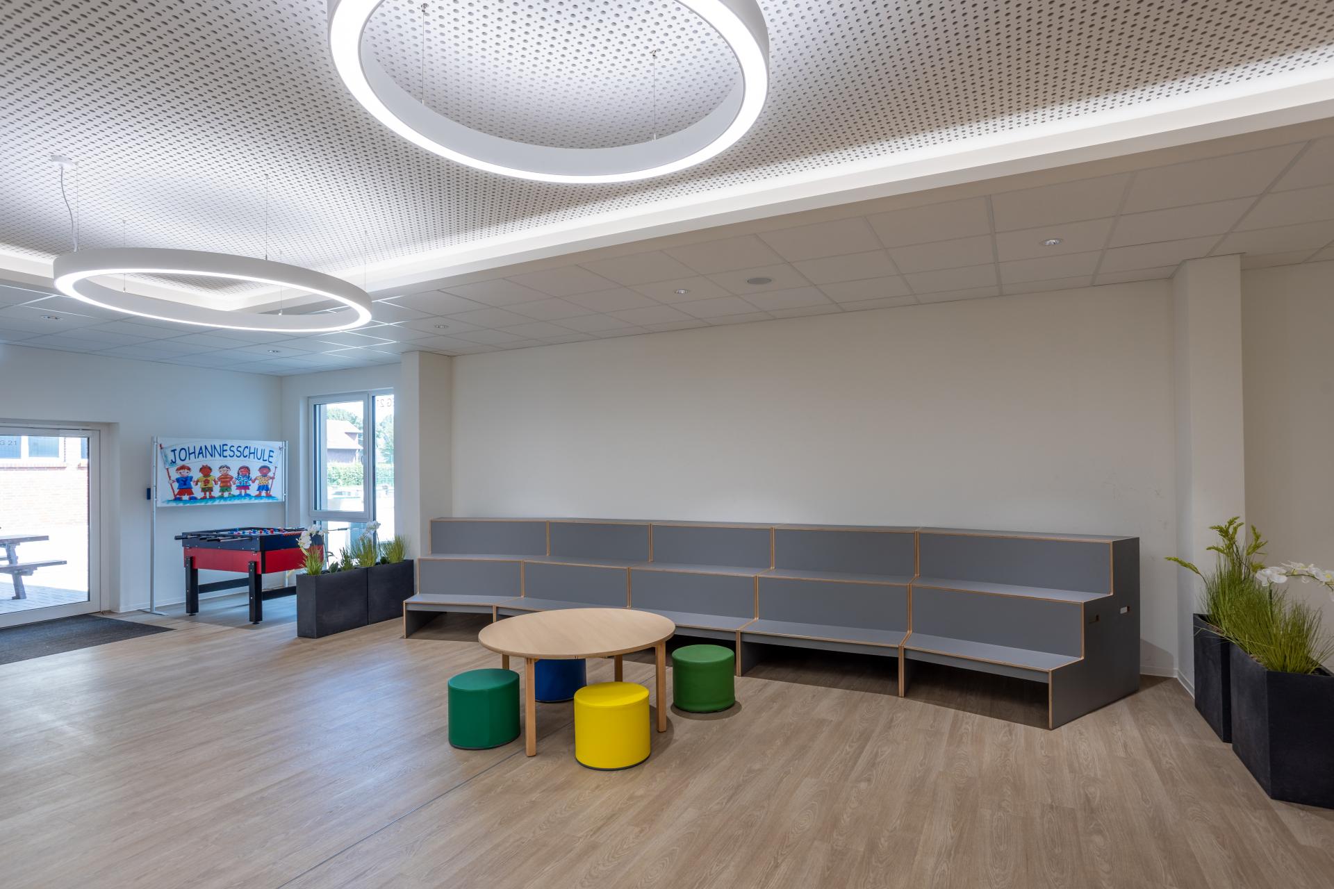 Die Schule verfügt nun über zwölf Klassenräume sowie über zahlreiche neue Fach- und Gemeinschaftsräume: ein Musikraum, ein Werkraum, drei Differenzierungsräume, eine Bibliothek sowie zwei multifunktionale „Marktplätze“ als offene Lernlandschaften. Der Bestandsbetreuungsraum wurde mit einer Teeküche und Sitzfenstern ausgestattet und kann in Kombination mit den Marktplätzen für die Ganztagsbetreuung genutzt werden. Zudem wurden die Mensa vergrößert, der Keller erweitert, zusätzliche Sanitäranlagen geschaffen und ein Aufzug eingebaut, der für Barrierefreiheit sorgt. „Das Ergebnis kann sich sehen lassen. Die Johannesschule ist nun bestens für die Zukunft gerüstet und bietet moderne Räume für Lernen, Kreativität und Gemeinschaft. Mit der Investition von 3,3 Millionen Euro zeigen wir deutlich: Bildung und die Zukunft unserer Kinder haben in Lingen höchste Priorität“, so der OB bei der Eröffnung.