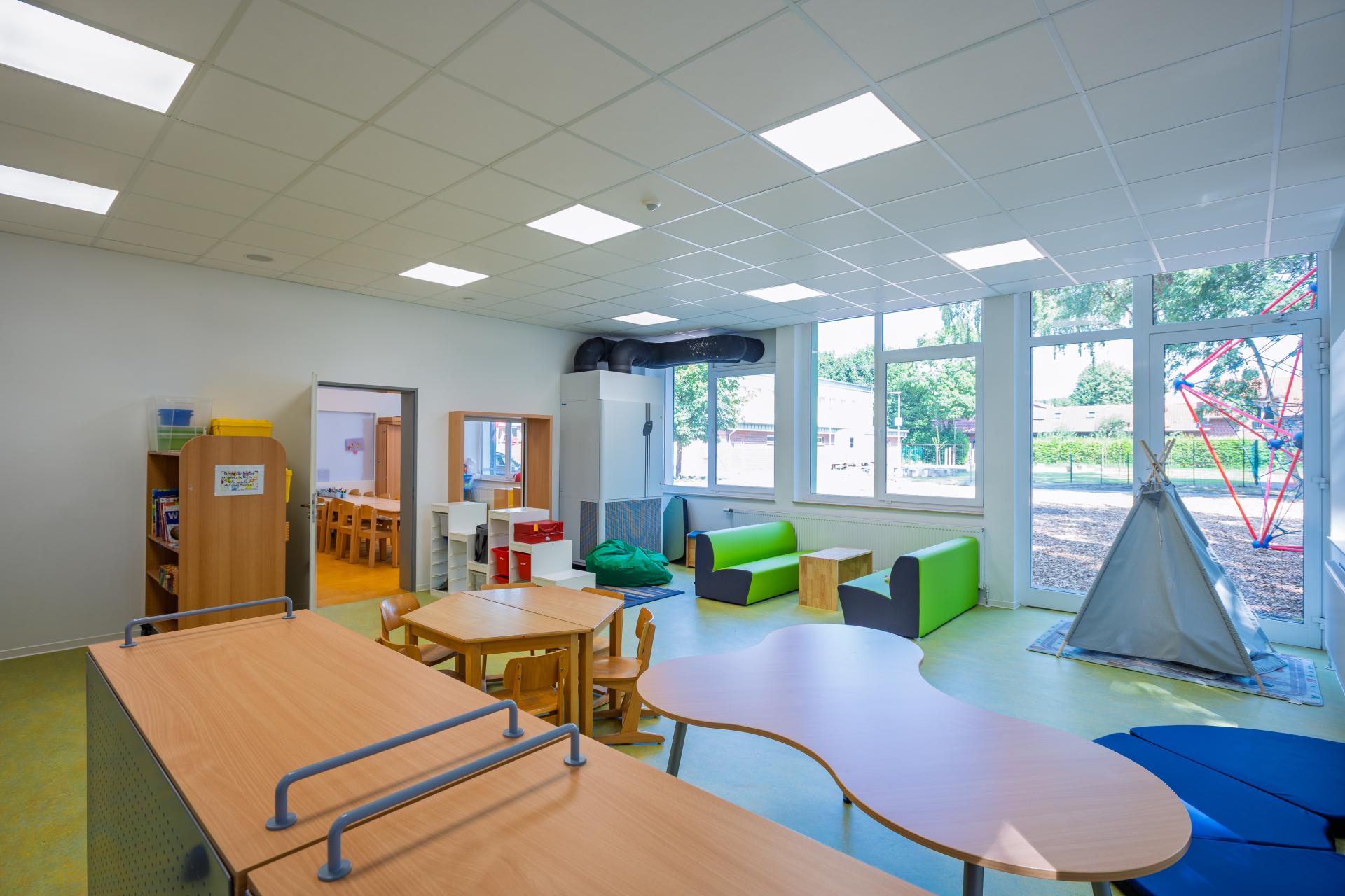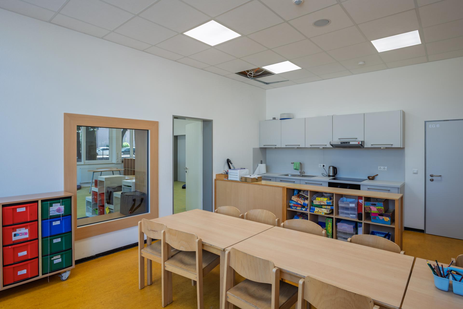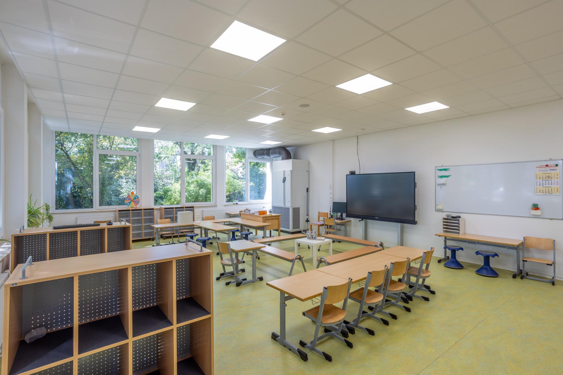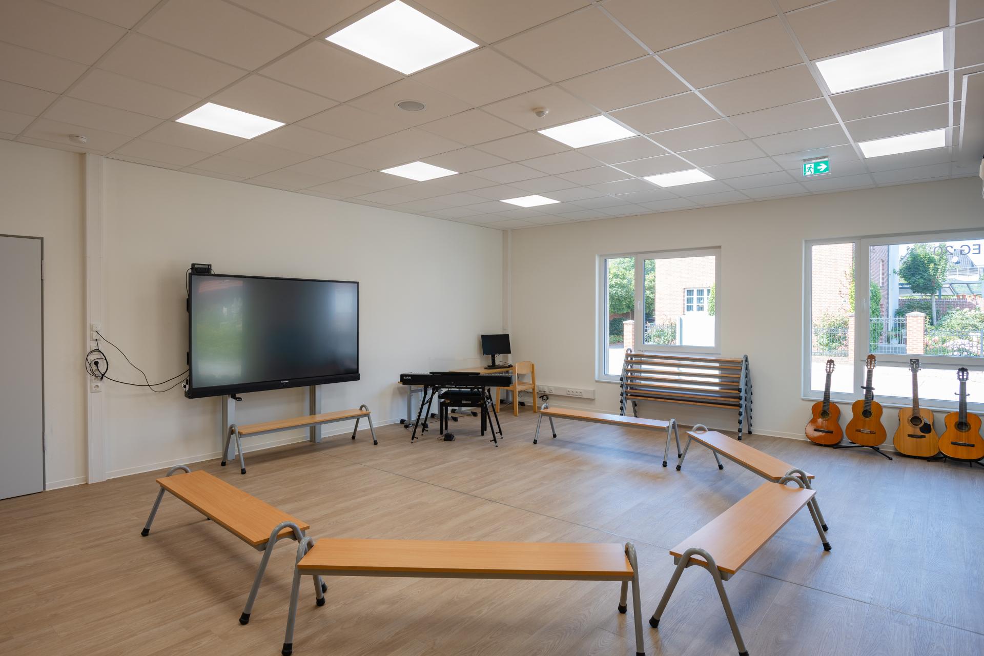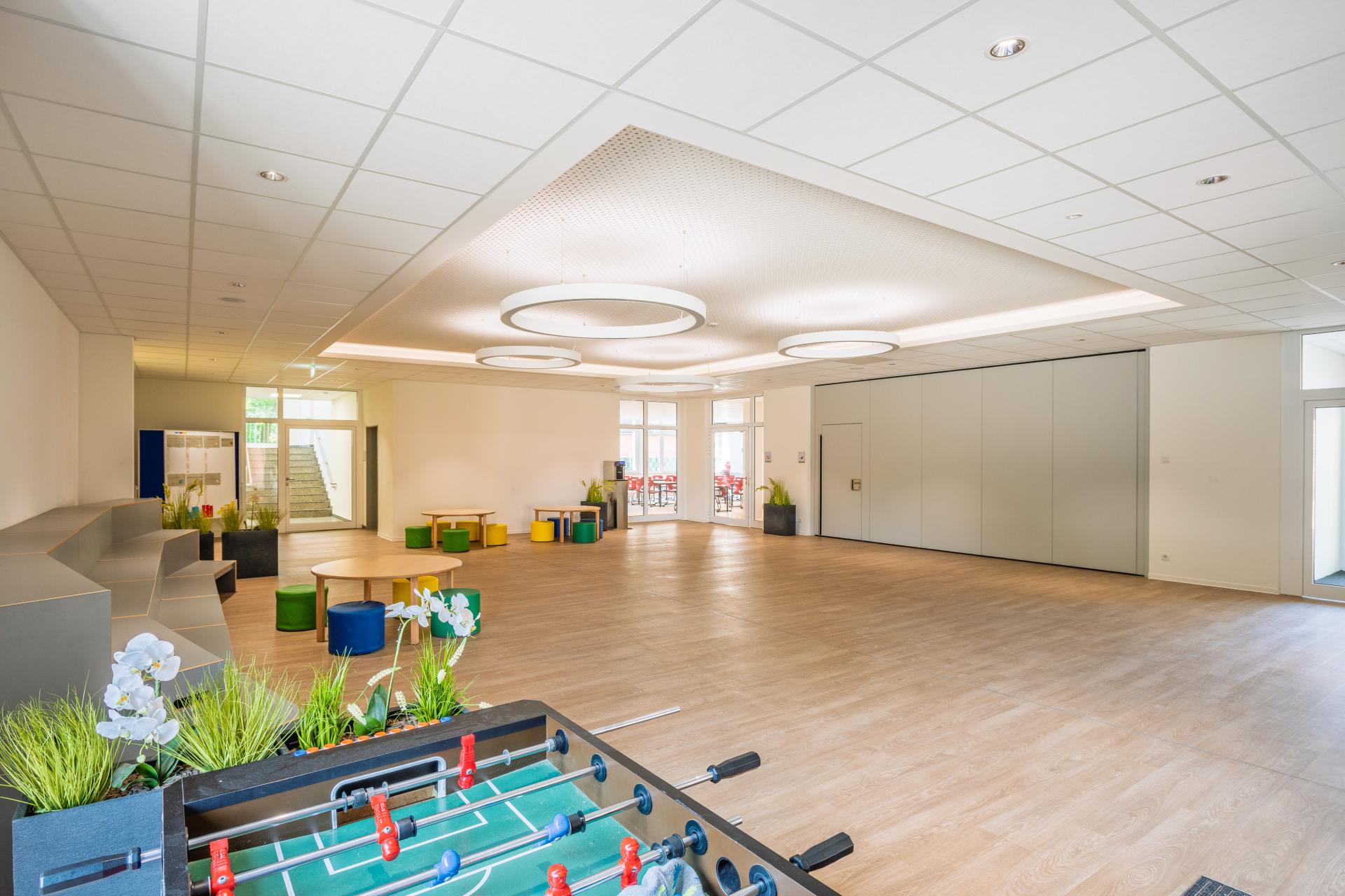 Die Schule verfügt nun über zwölf Klassenräume sowie über zahlreiche neue Fach- und Gemeinschaftsräume: ein Musikraum, ein Werkraum, drei Differenzierungsräume, eine Bibliothek sowie zwei multifunktionale „Marktplätze“ als offene Lernlandschaften. Der Bestandsbetreuungsraum wurde mit einer Teeküche und Sitzfenstern ausgestattet und kann in Kombination mit den Marktplätzen für die Ganztagsbetreuung genutzt werden. Zudem wurden die Mensa vergrößert, der Keller erweitert, zusätzliche Sanitäranlagen geschaffen und ein Aufzug eingebaut, der für Barrierefreiheit sorgt. „Das Ergebnis kann sich sehen lassen. Die Johannesschule ist nun bestens für die Zukunft gerüstet und bietet moderne Räume für Lernen, Kreativität und Gemeinschaft. Mit der Investition von 3,3 Millionen Euro zeigen wir deutlich: Bildung und die Zukunft unserer Kinder haben in Lingen höchste Priorität“, so der OB bei der Eröffnung.
