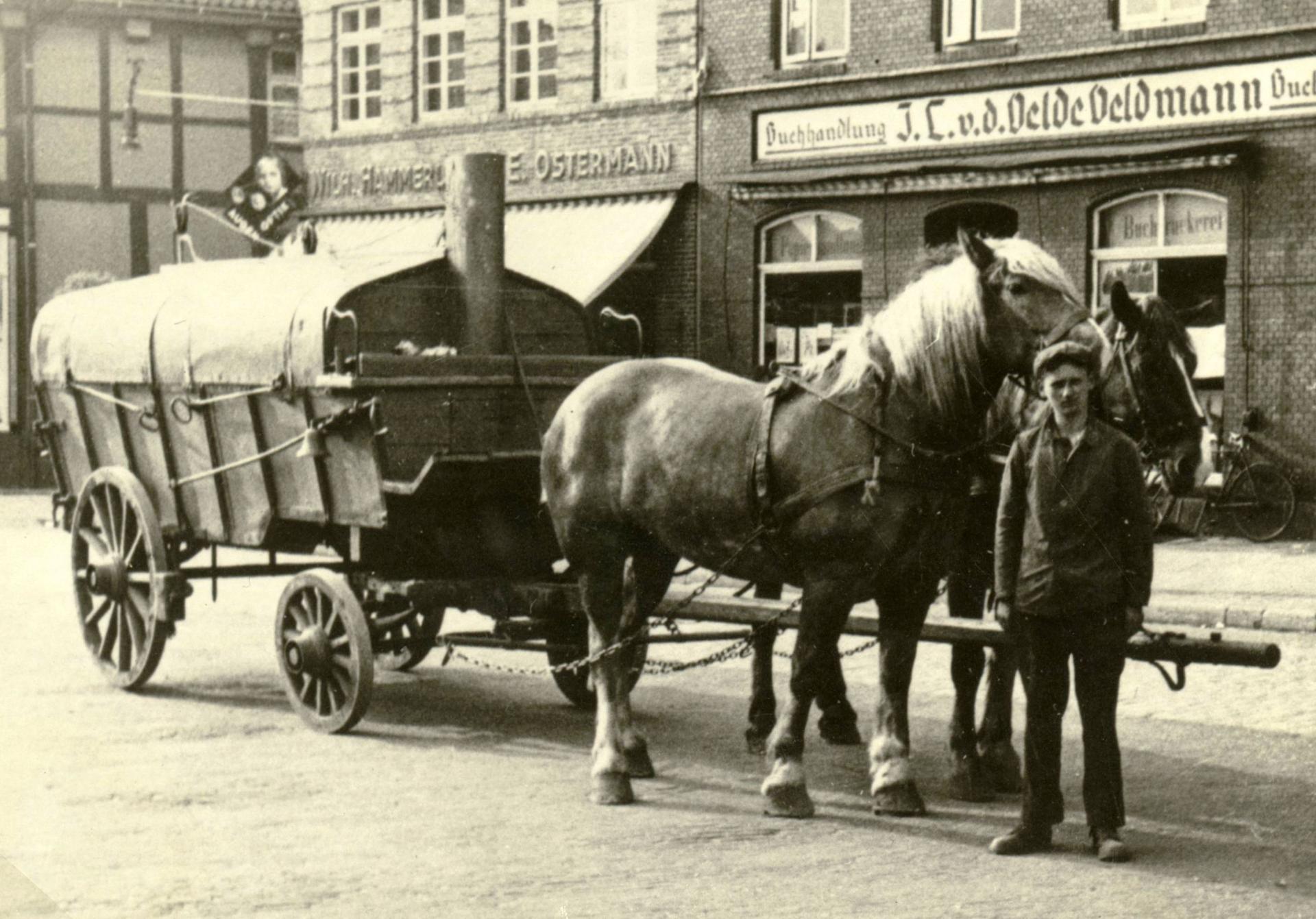 1910 jedenfalls übernahm der Neubauer Heinrich Hoffschröer die Müllabfuhr. Er sollte ein Fuhrwerk benutzten, das ein Verschütten des Inhalts ausschließe. Außerdem sollte er an sein Fuhrwerk ein hell klingendes und damit vom Milchwagen klar unterscheidbares Geläut anbringen, um sich anzukündigen. Die Stadt war inzwischen soweit angewachsen, dass sie in zwei Bezirke – einen Burgtorbezirk und einen Lookentorbezirk – unterteilt werden musste, die abwechselnd zwei bis drei Mal in der Woche angefahren wurden. Auch der Abfallbehälter der Hausbewohner musste nun bestimmten Ansprüchen genügen: maximal 70 cm lang, 30 cm breit und 40 cm hoch sollte er sein, außerdem mit einem abnehmbaren Deckel und zwei Handgriffen versehen. Sollte Hoffschröer einmal die Abholung versäumen, so musste er jedem betroffenen Haushalt 50 Pfennig zahlen. Tatsächlich kam es einmal zu Beschwerden, als Hoffschröer sich mit Rücksicht auf seine Pferde entschieden hatte, an einem starken Regentag nicht mit dem Dreckwagen auszufahren.
