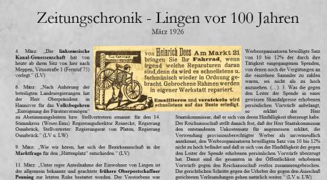 Aus dem Lingener Volksboten (LV) und dem Lingenschen Wochenblatt (LW). Die Zeitungen sind einsehbar im Stadtarchiv Lingen, Baccumer Str. 22, 49808 Lingen (Ems). www.lingen.de/stadtarchiv